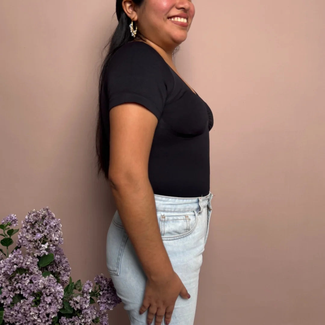 Este bodysuit es perfecto si tienes rollitos o abdomen bajo caído.